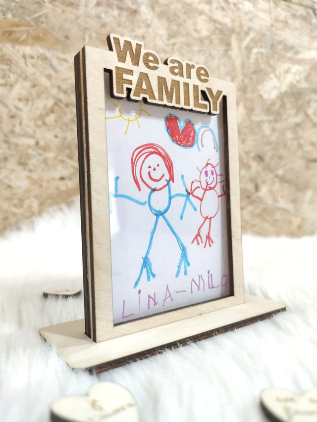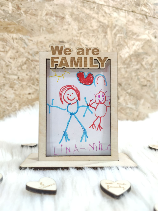 Un cadeau qui capture l'essence de l'amour familial avec notre cadre en bois "WE ARE FAMILY", spécialement conçu pour accueillir un précieux souvenir. Idéal pour y glisser un dessin d'enfant ou une photo chère à votre cœur (format 6x9 cm).
