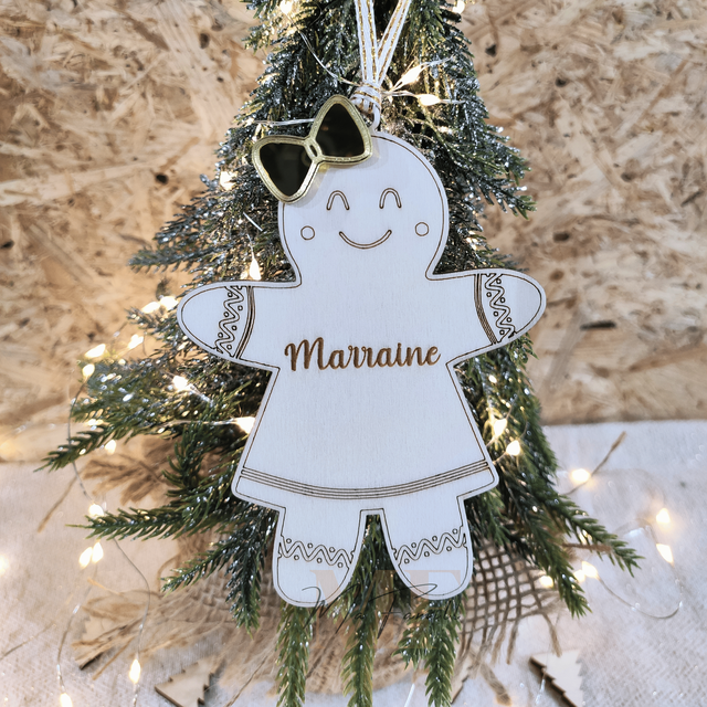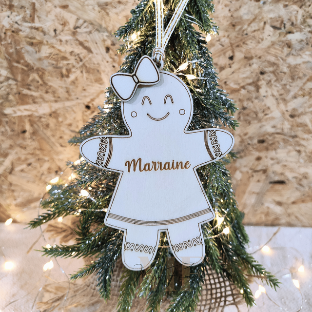 Décoration sapin - Bonhomme pain d'épice "PARRAIN / MARRAINE"