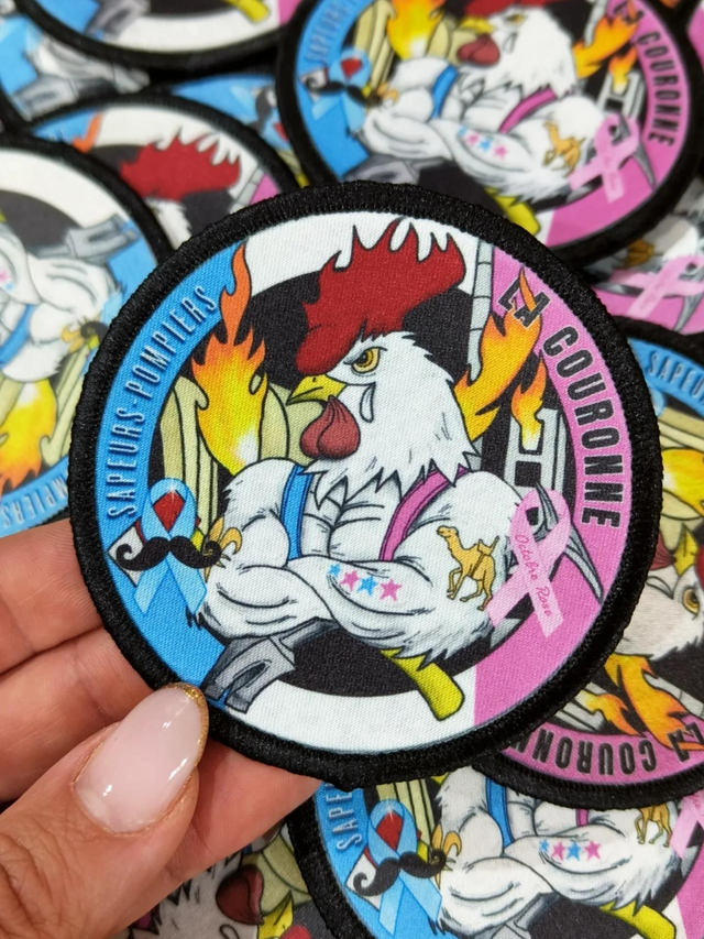 Chaque écussons est une pièce unique, imprimé avec le logo de la caserne des pompiers de La Couronne aux couleurs d'OCTOBRE ROSE ET MOVEMBER.