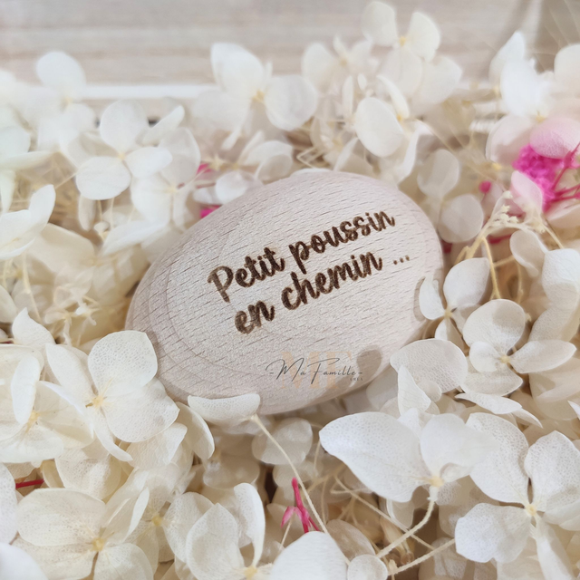 Œuf annonce de grossesse "Petit poussin en chemin..."