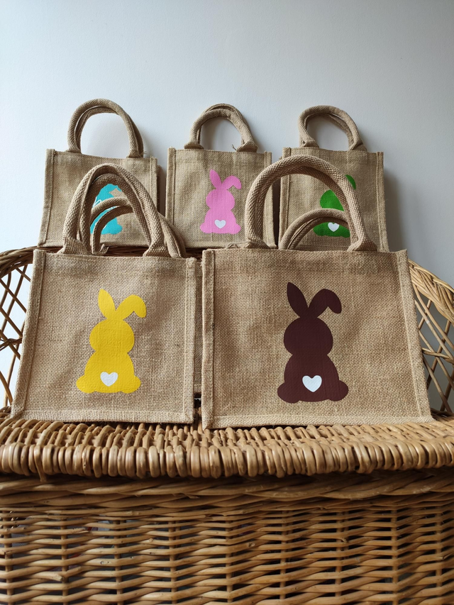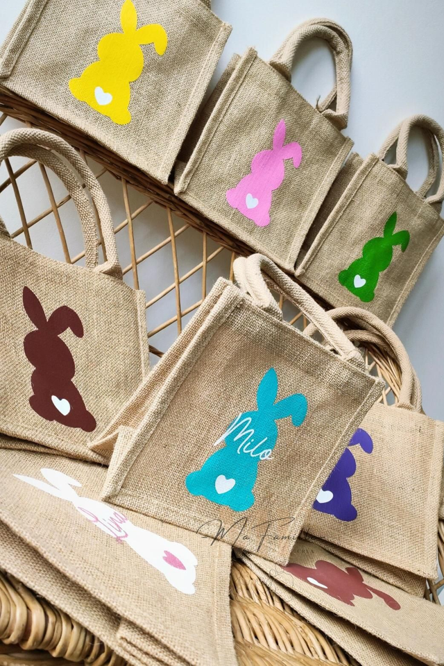 Préparez-vous pour une chasse aux œufs de Pâques inoubliable avec notre adorable sac de jute personnalisé ! Conçu spécialement pour les petites mains, idéal pour permettre à vos enfants de ramasser tous les délicieux œufs cachés dans le jardin.